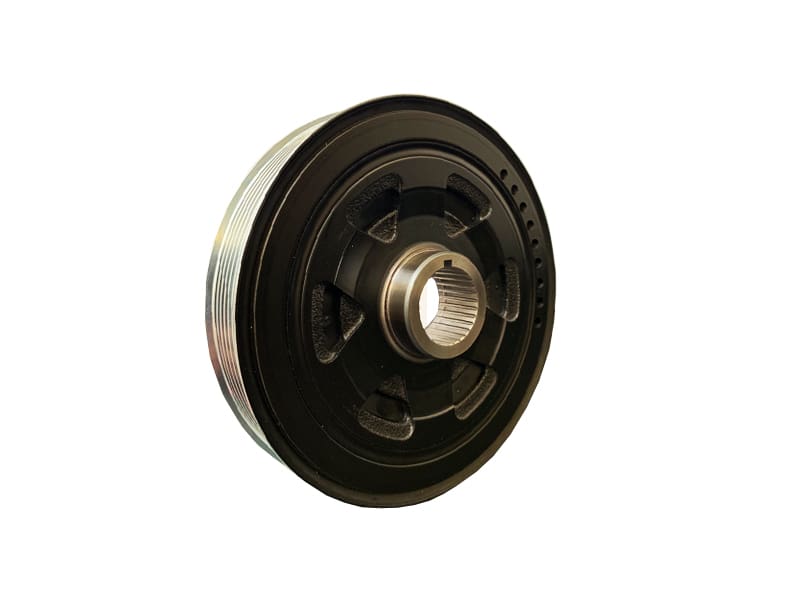 Genuine Honda crankshaft pulleys often include an internal dampener that decreases the vibrations that run along the crankshaft pulley belts, which could potentially harm connected systems. A broken or torn crankshaft pulley belt can be individually replaced; however, a faulty dampener requires replacement of the entire crankshaft pulley.