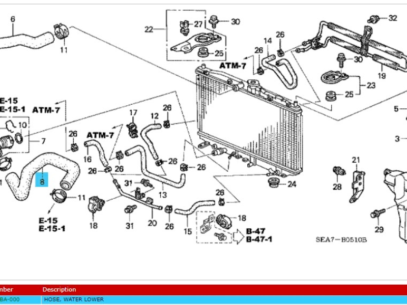 Genuine Honda Accord 2.0 Litre Petrol Lower Radiator Hose 2003-2008 (19505RBA000)