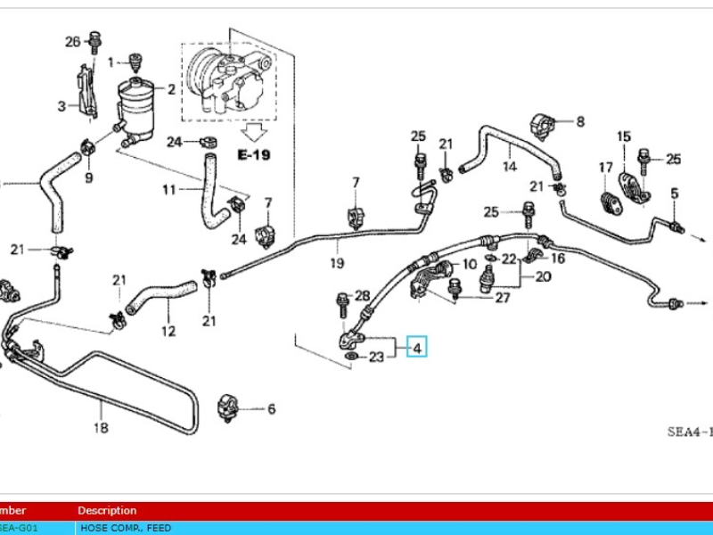 Complete power steering hose for a 2.0 Petrol Honda Accord 2003-2008