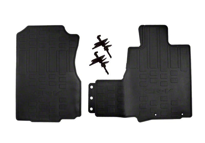 Black rubber mats providing protection against a wet and dirty foot area. Features CR-V logo. 1 set = 2 pieces.