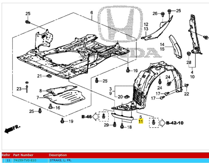 Genuine Honda Civic Front Left Under Bumper Strake (74159-TV0-E10)