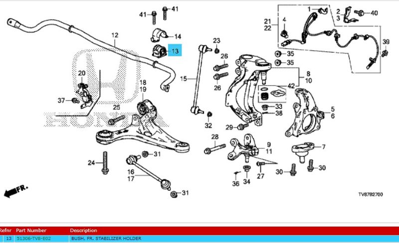 Genuine Honda Civic Type-R FK2 Front Anti Roll Bar Bushes (x2) 2015-2016 (51306TV8E02)
