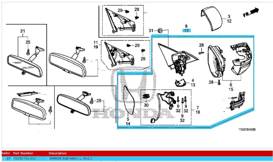 Genuine Honda Civic Left Side Mirror Body 2017-2021 (76258TGLE32) ***Non indicator unit***