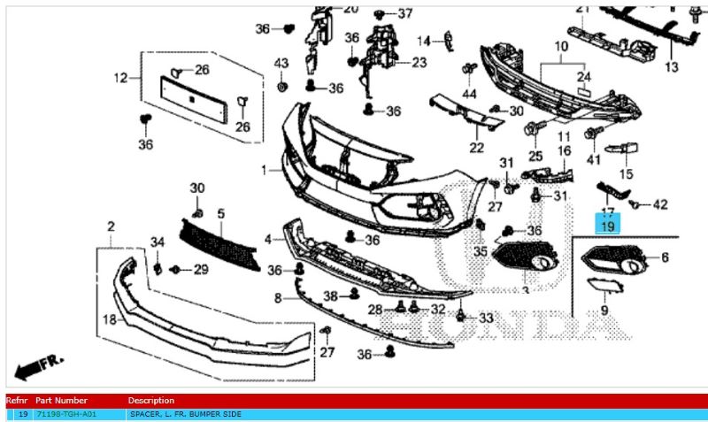 Home » Honda Shop » Honda Civic Type R Accessories & Parts » 2017 Onwards Honda Civic Type-R FK8 » 2017 Onwards Honda Civic Type-R Body Parts » Genuine Honda FK8 Left Hand Front Bumper Spacer (71198TGHA01)