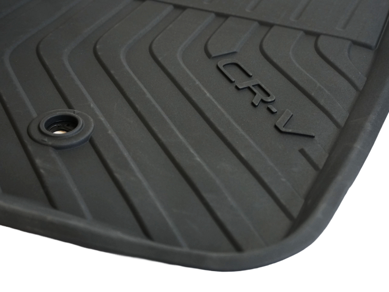 These all-season mats with raised edges are made to protect the entire footwell and feature the CR-V logo. They are tough yet easy to clean. The kit includes two front, two rear mats and four fitting clips.