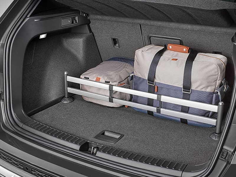 Aluminium divider to separate the space in the vehicle’s luggage compartment and ensure the load does not move. The divider can be fitted along the outer edge of the floor panel with clips, while the telescopic bar of the removable luggage compartment module ensures it is safely secured.