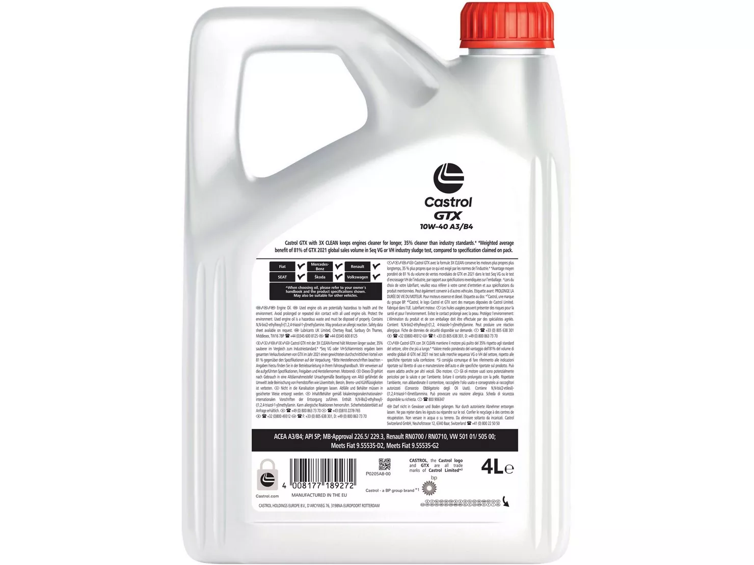CASTROL GTX ULTRACLEAN 10W-40 A3/B4 – SYNTHETIC TECHNOLOGY MOTOR OIL – 4L