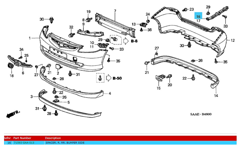 Genuine Honda Jazz 2004-2008 Right Rear Bumper Spacer (71593SAA013)