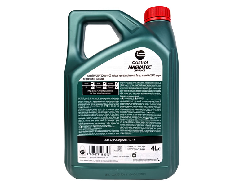 Castrol MAGNATEC 0W-30 C2 is engineered for today’s driving, where engines spend more time in traffic and experience repeated start-stop cycles. Castrol MAGNATEC molecules cling to key engine components to help protect critical parts from wear, supporting long-term engine performance and reliability.