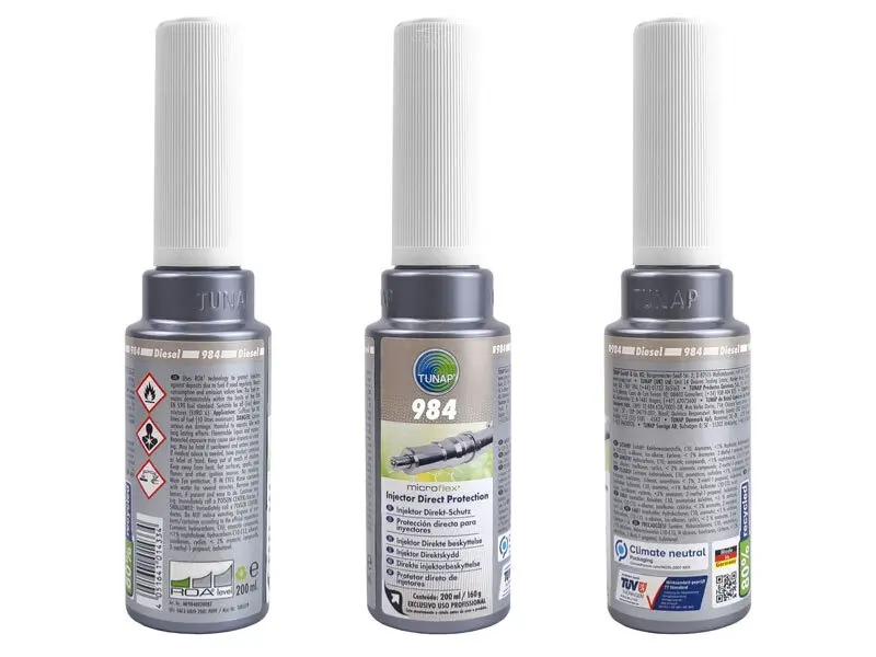Tunap 984 uses ROA² (Reactive Organic Amines) technology to clean fuel injectors and protect against harmful deposits. Suitable for all common rail and pump-nozzle systems, it helps maintain fuel efficiency, reduces CO₂ emissions, and improves cold starts.