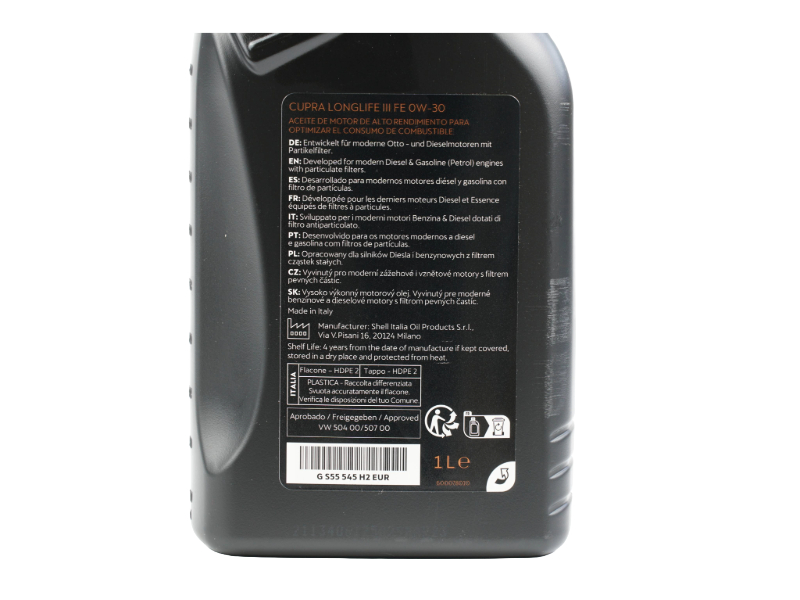 This is the official CUPRA approved engine oil, specially formulated to meet the exact performance standards of your CUPRA. Supplied in a convenient 1 Litre bottle, it’s perfect for topping up or maintaining optimal oil levels between services.