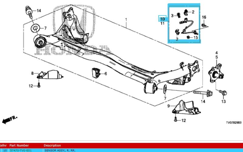 Genuine Honda Civic 2012-2016 ABS/Speed Sensor Right Rear (57470TV0E01)
