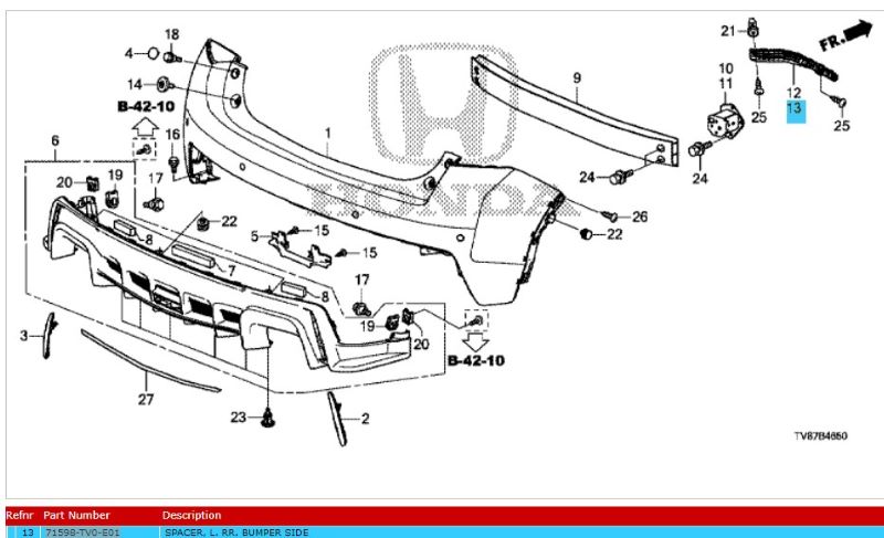 Genuine Honda Civic & FK2 2012-2016 Left Rear Bumper Spacer (71598-TV0-E01)