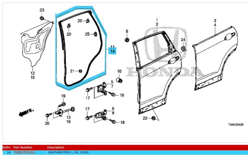 Genuine Honda CRV 2015-2018 Left Rear Weatherstrip (72850T1GE11)