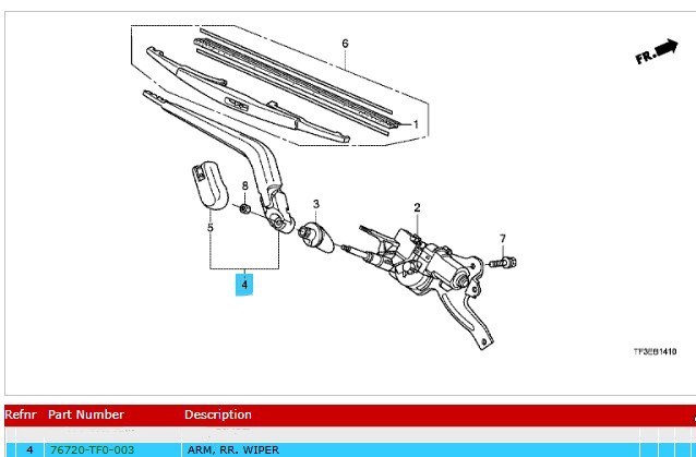 Genuine Honda Jazz Rear Wiper Arm 2009-2015 (76720TF0003)