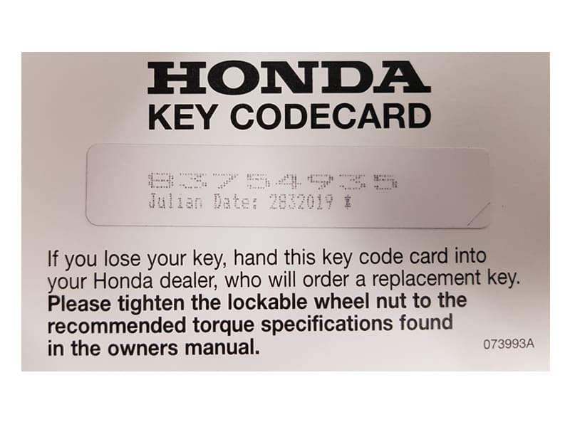 Genuine Honda Locking Wheel Nut Key (I Don't Know My Code) (08LCKSJD***)