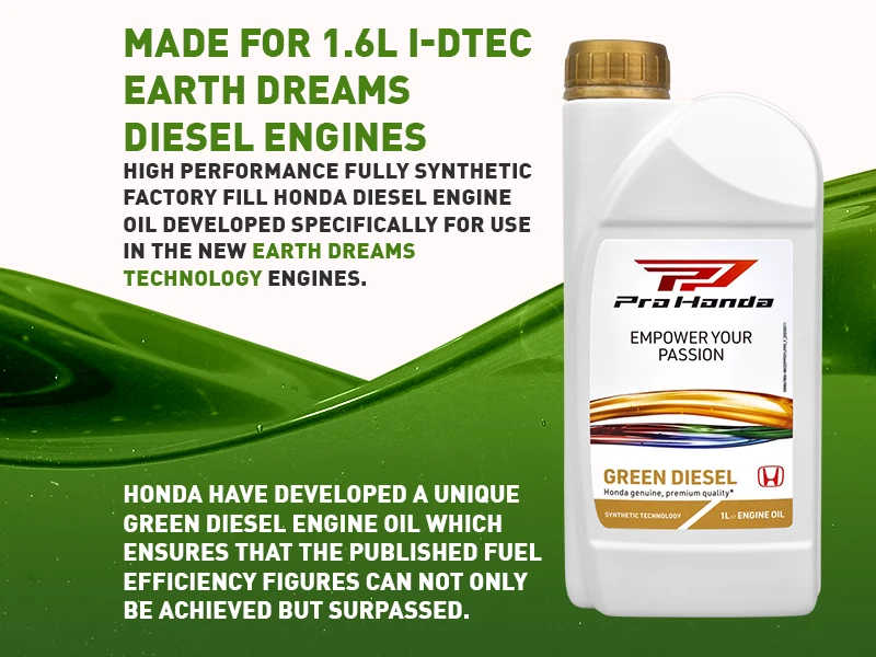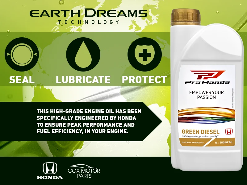 Honda have developed a unique Green Diesel Engine Oil which ensures that the published fuel efficiency figures can not only be achieved but surpassed.