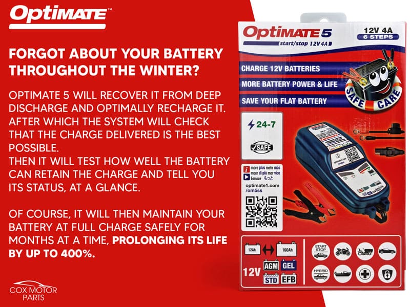 Order the OptiMate 5 from Cox Motor Parts today – Trusted, Rated Excellent on Trustpilot, and shipped fast across the UK!