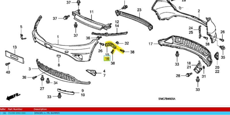 Genuine Honda Civic Front Left Bumper Spacer & Screws 2006-2011 (71198SMGE00 & 9390325320 x2)