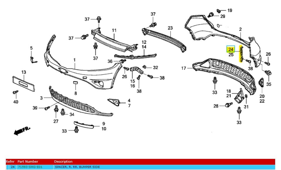 Genuine Honda Civic Right Rear Bumper Spacer 3 & 5 door 2006-2011 (71593-SMG-E01)