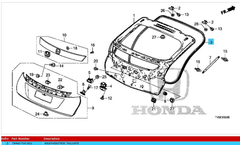 Home » Honda Shop » Honda Civic 5 Door Parts & Spares » 2012-2016 Honda Civic 5 Door » 2012-2016 Honda Civic 5 Door Body Parts » Genuine Honda Civic 2012-2016 Tailgate Weather Strip (74440TV0E01)