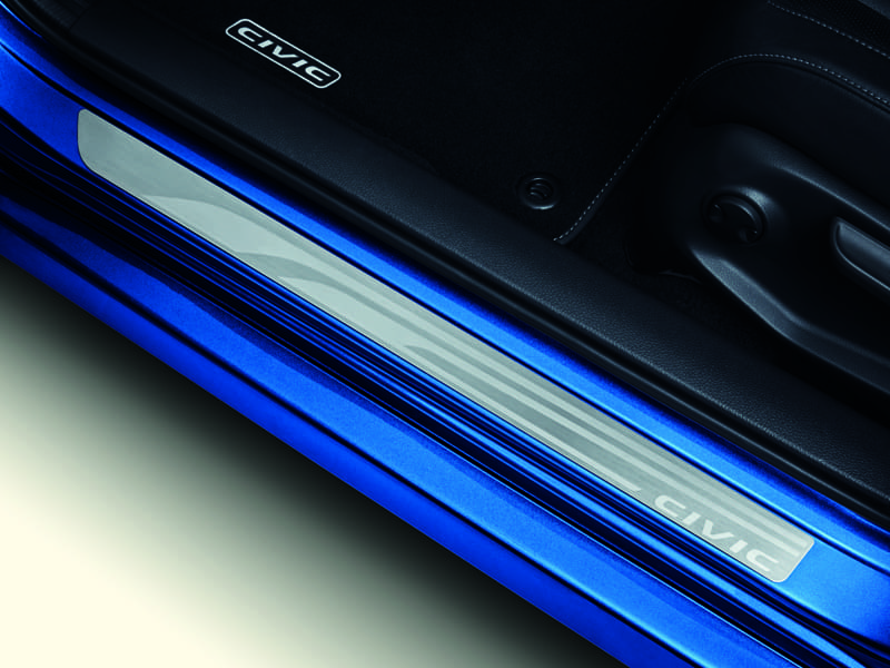 The doorstep garnishes add a personal touch to your car while protecting the door sills from marks and scratches. Crafted in stainless steel, they also have an eye-catching, etched “Civic” logo. Includes: front and rear trims.