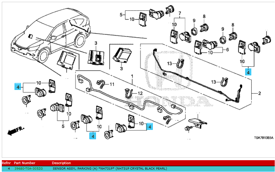 Genuine Honda Crystal Black Parking Sensor CRV 2013-2014 (39680TV0305ZG)