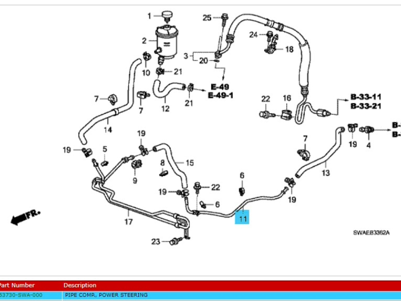 Genuine Honda CR-V 2.2 i-CTDI Diesel Power Steering Pipe 2007-2009 (53730SWA000)