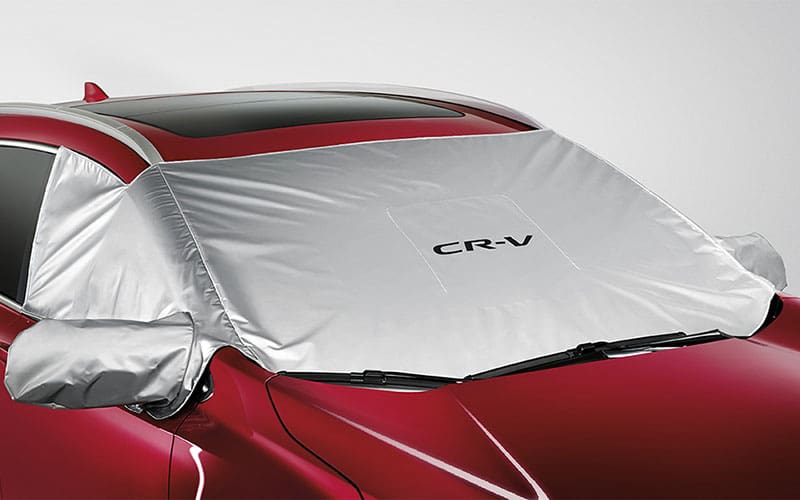 A shield against the elements. This stylish and model specific Windshield Cover will also protect the mirrors and front side windows from heavy weather when your car is parked outside. Features CR-V logo.