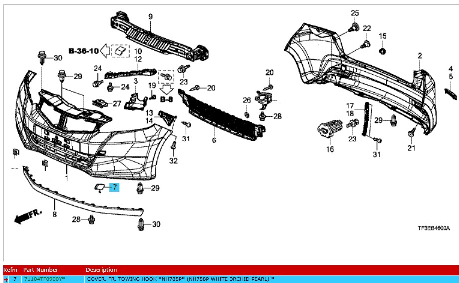 Genuine Honda Jazz 2012-2015 Front Tow Eye Cover - White Orchid Pearl (71104TF0900YA)