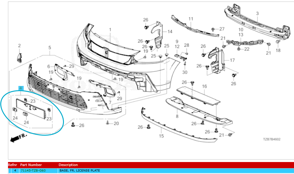 Genuine Honda Jazz Hybrid 2024 Onwards Front Number Plate Mount (71145TZBG60)