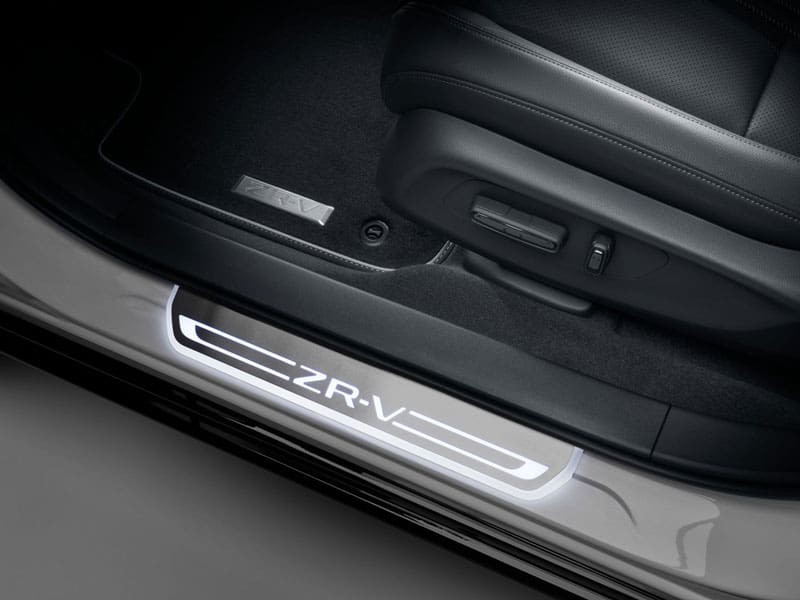 Add an extra touch of style to your ZR-V’s interior with the illuminated doorstep garnishes. The stainless steel finish glows with a ZR-V logo for sleek lighting when you open the door.