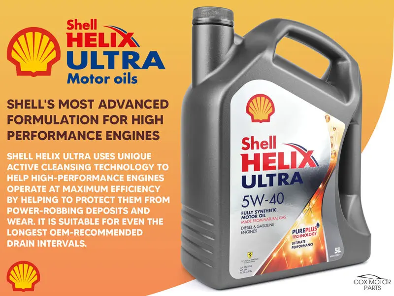Shell Helix Ultra uses unique active cleansing technology to help high-performance engines operate at maximum efficiency by helping to protect them from power-robbing deposits and wear. It is suitable for even the longest OEM-recommended drain intervals.