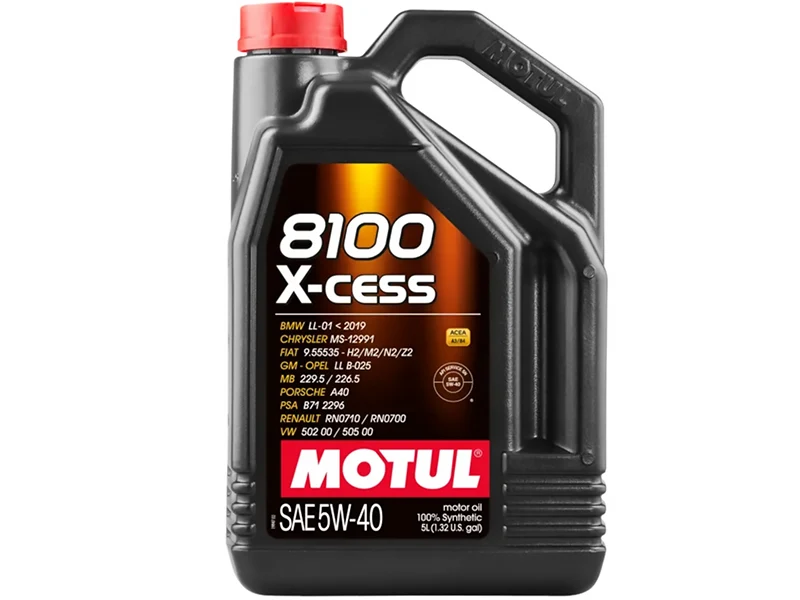 MOTUL 8100 X-cess 5W-40 is a high-performance, synthetic technology engine oil developed for modern petrol and diesel engines with large displacements. Recommended for vehicles requiring robust wear protection, detergent power, and compliance with leading manufacturer standards, including BMW, Mercedes-Benz, VW, Renault, PSA, and Fiat.