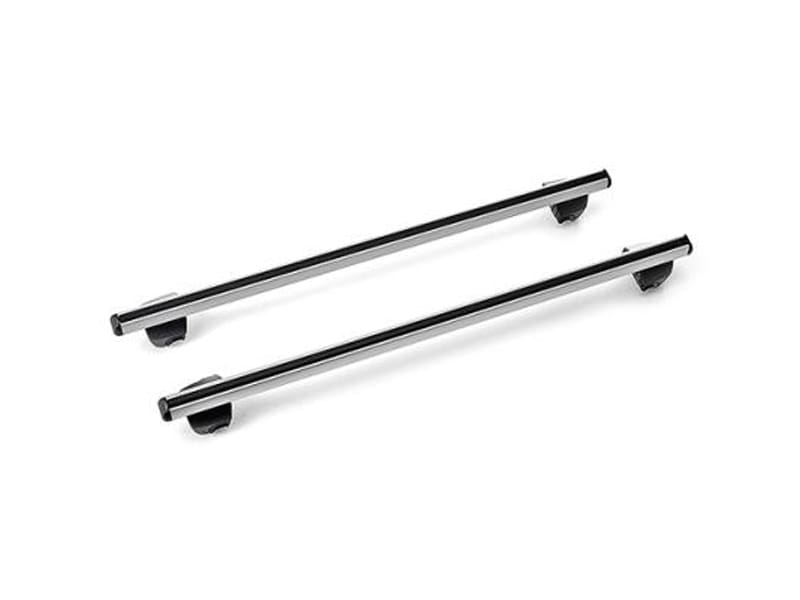 Set of front and rear roof bars with anti-theft system included. They are fixed to the roof rails of the vehicle and can be used on vehicles with a sunroof.