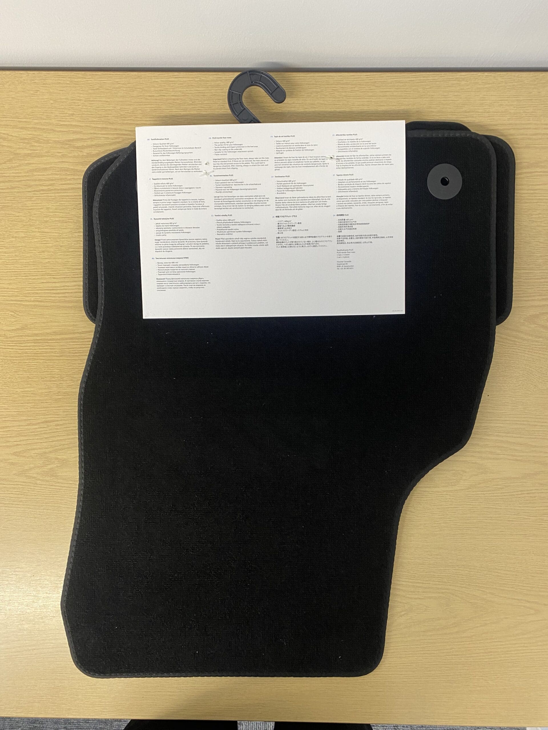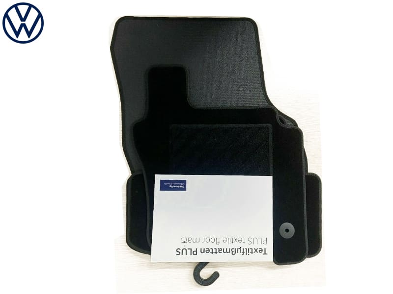 Textile floor mats “Plus”. Set of 4 for the front and rear. Resilient. Perfect fit and non-slip. Step protection in the shoe heel area. Suitable for the Volkswagen fastening system.