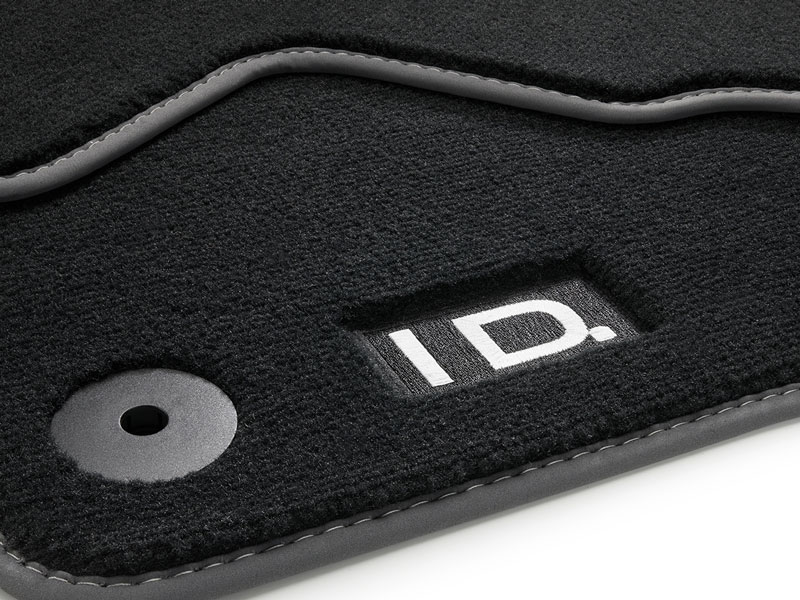 Volkswagen Genuine textile floor mats. Set of 2 for the front. Material: top layer made from recycled PET with I.D. lettering. Made-to-measure and long-lasting. Durable, low odour. Suitable for the Volkswagen fastening system.