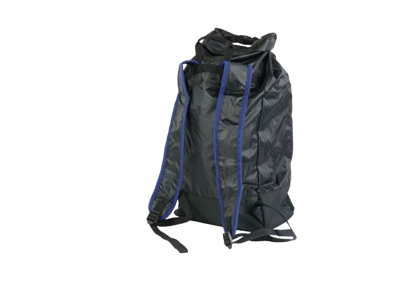 Top part of the backpack made of ripstop polyester with a PU coating. Water column of 1000 mm. Reinforced base made of 600D polyester with a PU coating. Water column of 300 mm. R logo on the front. Integrated pocket at the front. Zip with reflective bonding all around. Drybag, water-repellent material. With blue contrast elements.