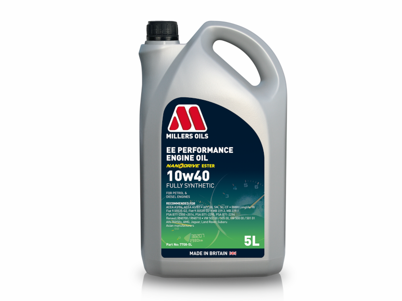 Millers Oils EE Performance 10w-40 is a fully synthetic, full SAPS (Sulphated Ash, Phosphorus & Sulphur) performance engine oil for use in petrol and diesel engines. It features NANODRIVE low friction technology for vehicles requiring an A3/B4 or A3/B3 10w40 specification, covering a wide range of older vehicles benefiting from fully synthetic technology.