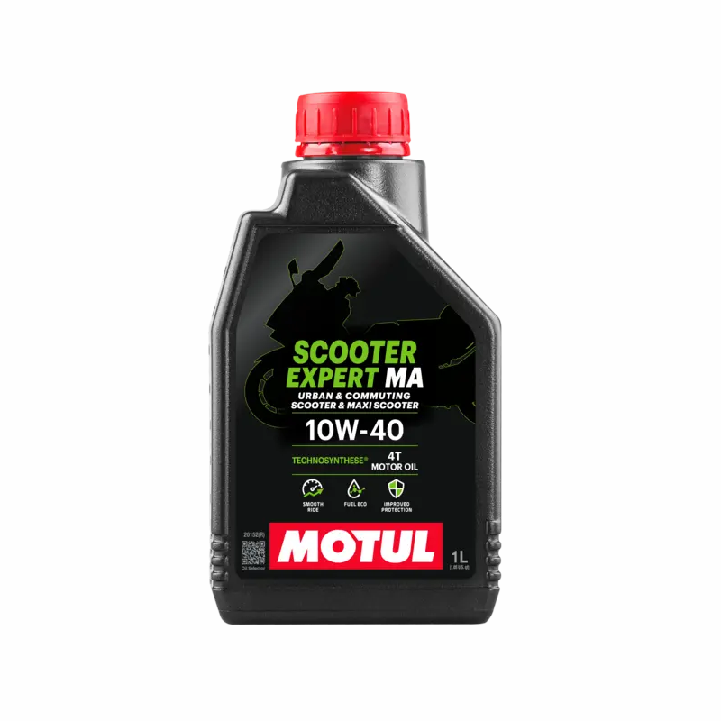 MOTUL Scooter Expert 4T MA 10W-40 is a high-performance synthetic-based 4-stroke engine oil developed specifically for scooters and maxi-scooters equipped with wet clutches. Whether you’re weaving through city traffic or riding longer urban commutes, this oil delivers smooth performance, engine longevity, and fuel efficiency.