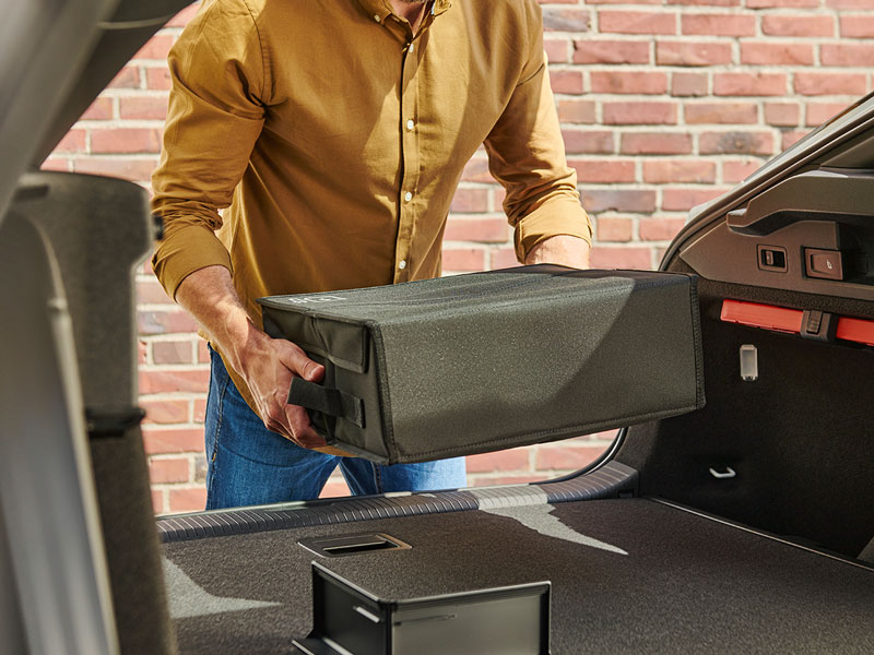Secure your cargo with Volkswagen Genuine cargo elements. Two flexible plastic corners keep items in place on the luggage compartment carpet. The Velcro system ensures a highly adhesive bottom, supporting weights up to 8 kg. Collapsible and adjustable at multiple angles with a hinge system, making it easy to adapt to various cargo sizes. Each set includes 2 cargo attachments for added convenience. Travel with confidence, knowing your cargo is secured.