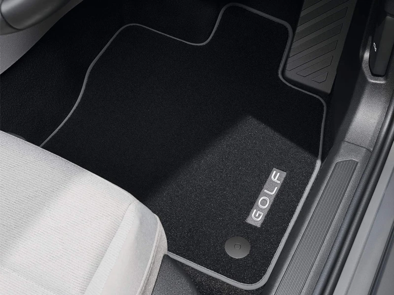 The Volkswagen Genuine “Premium” textile floor mats are shaped to fit your vehicle’s footwells perfectly and are made from hardwearing, thick woven velour. The front mats feature “Golf” vehicle lettering. The front mats are fixed in place using the attachment points in the floor area. The rear mats feature a wear-proof coating on the back to prevent them from slipping.