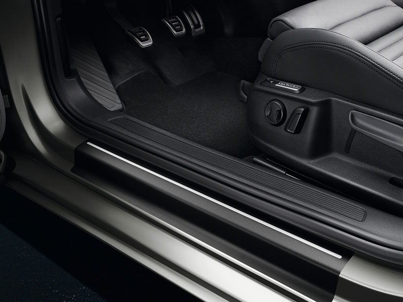 An eye-catcher when getting in: the black film with silver decorative stripes not only enhances the appearance of your vehicle’s door sills, it also protects against scratches. The precisely-cut sill protector film is simply adhered to the sill. Each set comprises four film pieces for the door sills.