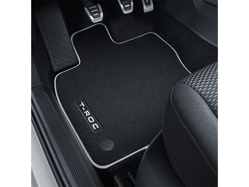 The Volkswagen Genuine textile floor mats are made from durable, high-quality velour with T-Roc branding, and create a visual highlight that also helps to protect the car interior. The simple 2-point fastening system ensures the premium floor mats do not slip or turn.