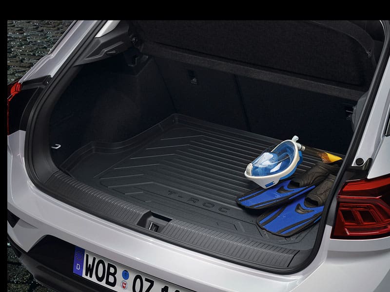 The practical and robust Volkswagen Genuine luggage compartment tray protects the luggage compartment from dirt and prevents the loads being transported from slipping. The plastic tray is washable and designed to fit perfectly in the vehicle. The surrounding raised rim of approx. 4 cm prevents liquids running out onto the vehicle floor. With vehicle lettering. Luggage compartment tray for vehicles with variable loading surface. Use in the top loading surface position.