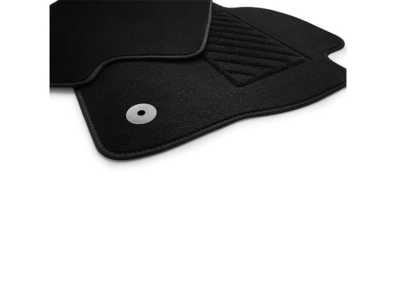 Textile floor mats. “Plus” textile floor mats. Set of 4 for the front and rear. Durable. Made-to-measure and non-slip. Impact protection in the heel area. Suitable for the Volkswagen fastening system.