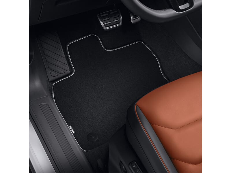 The Volkswagen Genuine textile floor mats are made from durable, high-quality velour with Tiguan branding, and create a visual highlight that also helps to protect the car interior. They attach to the floor easily with a 2-point fastening system to ensure that they not slip or turn.
