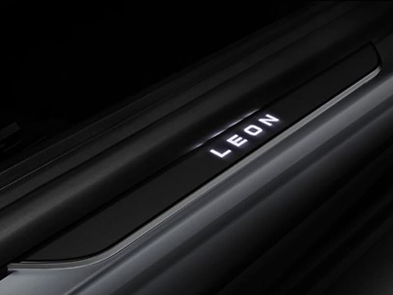 You can tell your SEAT Leon is special just by opening the door. This side sill for the entrance area bearing the model name lights up for thirty seconds when the door is opened.