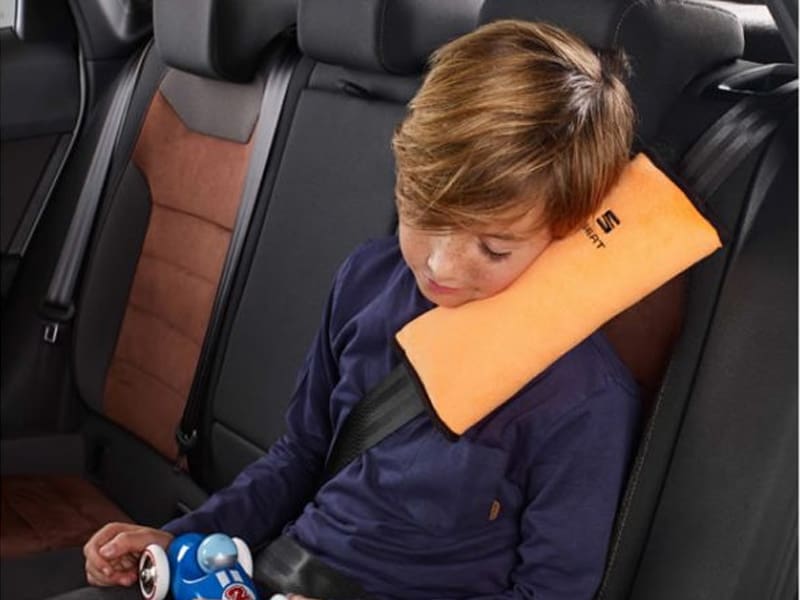 Soft pad. Perfect for leaning on and for children to rest. Easy to install on the vehicle’s seat belt.