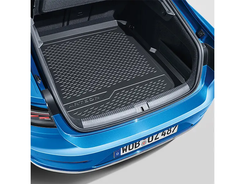 The practical and robust Volkswagen Genuine luggage compartment tray protects the luggage compartment from dirt and prevents the loads being transported from slipping. The plastic tray fits perfectly and is also washable and non-slip. The surrounding raised rim of approx. 4 cm prevents liquids running out onto the vehicle floor. Contains Arteon lettering.